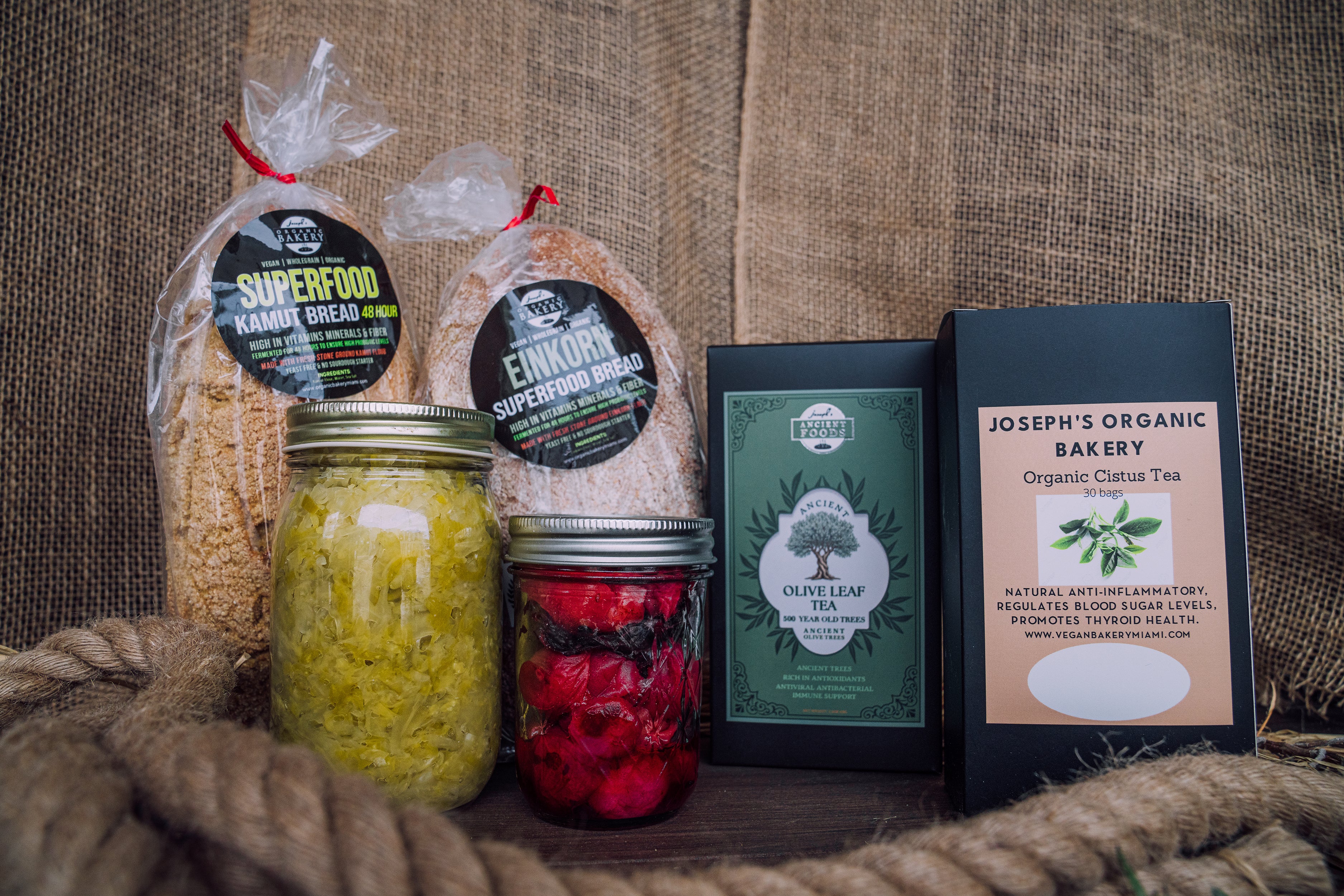 At Joseph's Organic Bakery , we never heat or pasteurize the final product. We use the ancient traditional method of making sauerkraut, just sea salt, cabbage, carrots, bay leaf and peppercorn fermented to ensure a product that is rich in beneficial enzymes, probiotics, and vitamin C. We make our sauerkraut by hand in small batches.