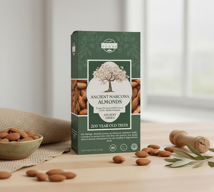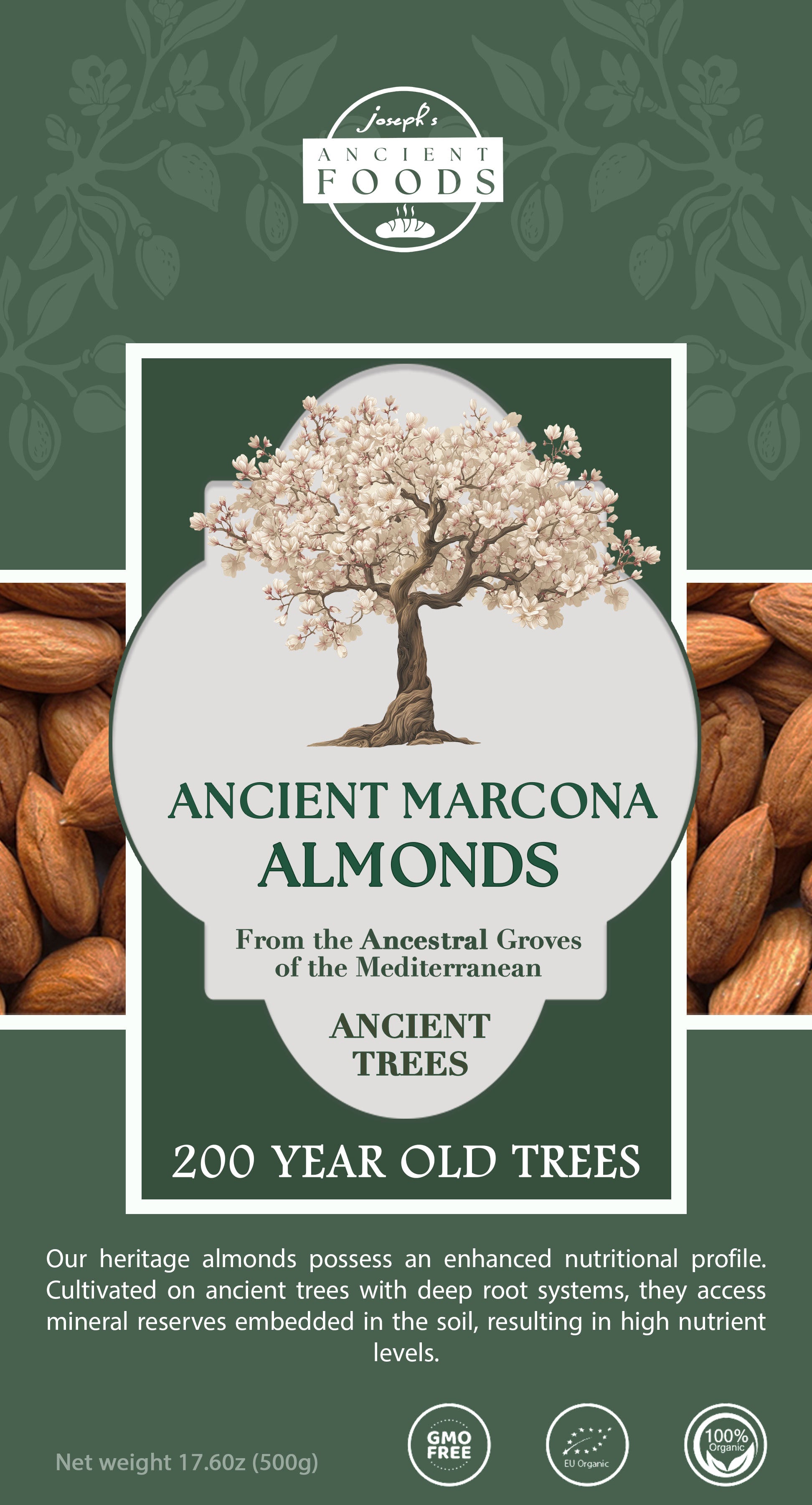Unlike commercial almonds bred for yield and uniformity, our Ancient Almonds were grown naturally with the land, with each tree hundreds of years old. Rooted in mineral-rich soil and nourished by clean Mediterranean sunlight. This slow, natural cultivation produces almonds with a fuller aroma, denser nutrient profile, and a more authentic connection to the earth. Every batch reflects the same purity and vitality that our ancestors relied on for strength, wellbeing, and sustained nourishment.